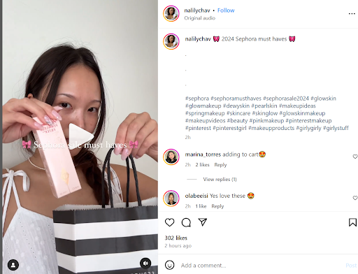 Through strategic partnerships with influencers such as beauty vloggers and makeup artists, Sephora showcases its products in authentic and engaging ways. This drives brand awareness and visibility, which influences purchasing decisions among its target audience.