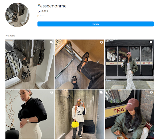 A great example of such a hashtag is #asseenonme, which was a campaign launched in 2014. However, despite initially starting a campaign it is still being used today by ASOS customers in their social posts.