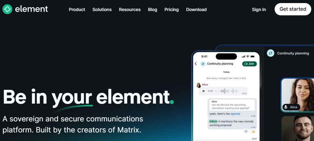 Element is a decentralized, open-source messaging platform built on the Matrix protocol. It’s ideal for teams who want ownership over their communication—you can self-host or use their cloud service.