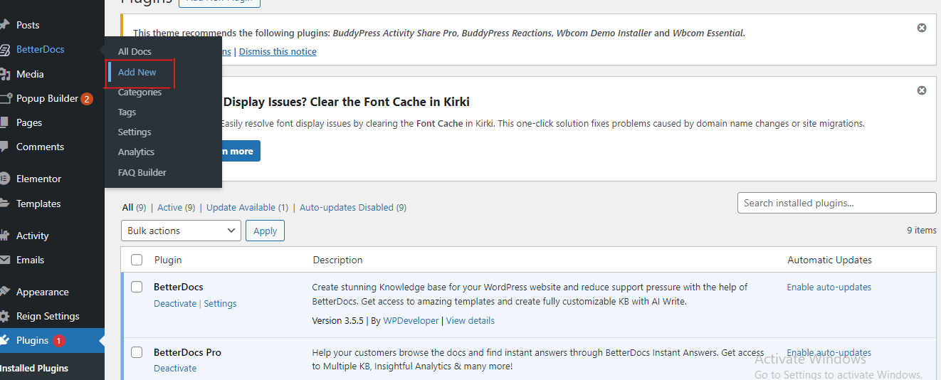 - After activating the plugin, go to the “Better Docs” section in your WordPress dashboard.