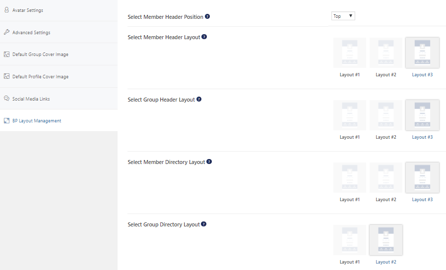 All these options will help you change your layout settings in your BuddyPress profiles, members, and groups directory.
