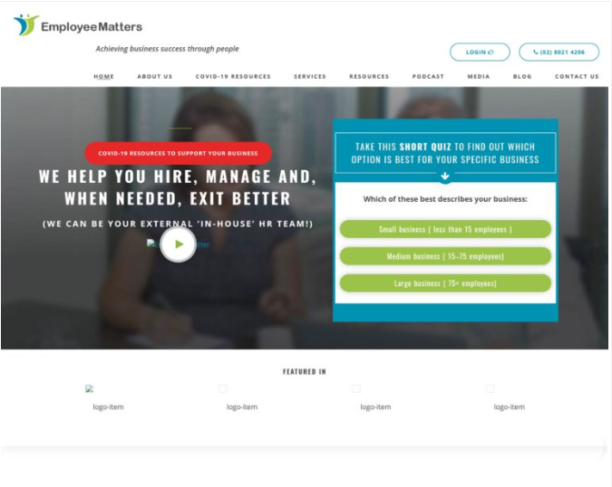 Employee Matters is a service that helps businesses manage their workforce more effectively. Their landing page is structured to highlight key benefits.