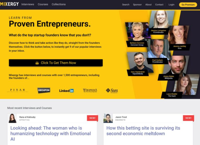 Mixergy is a platform that provides interviews with successful entrepreneurs. Their ClickFunnels landing page is focused on building trust and encouraging visitors to sign up for their courses.