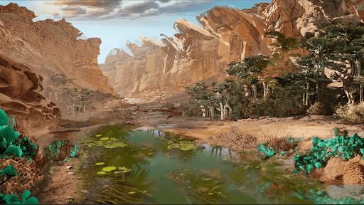 Creating a unique game setting is the main task of concept artists. The environment should be believable and interesting for players to explore, with coordinated elements creating a sense of a real world.
