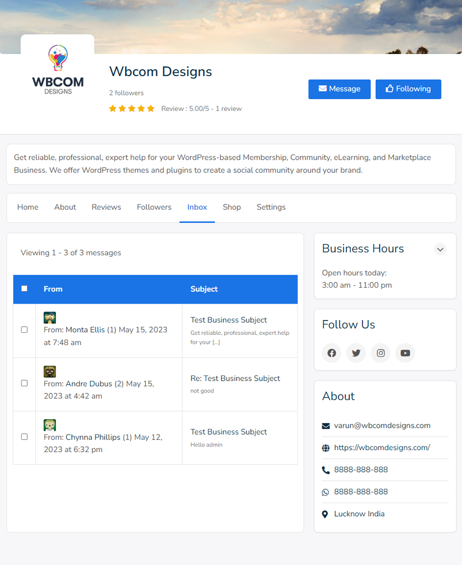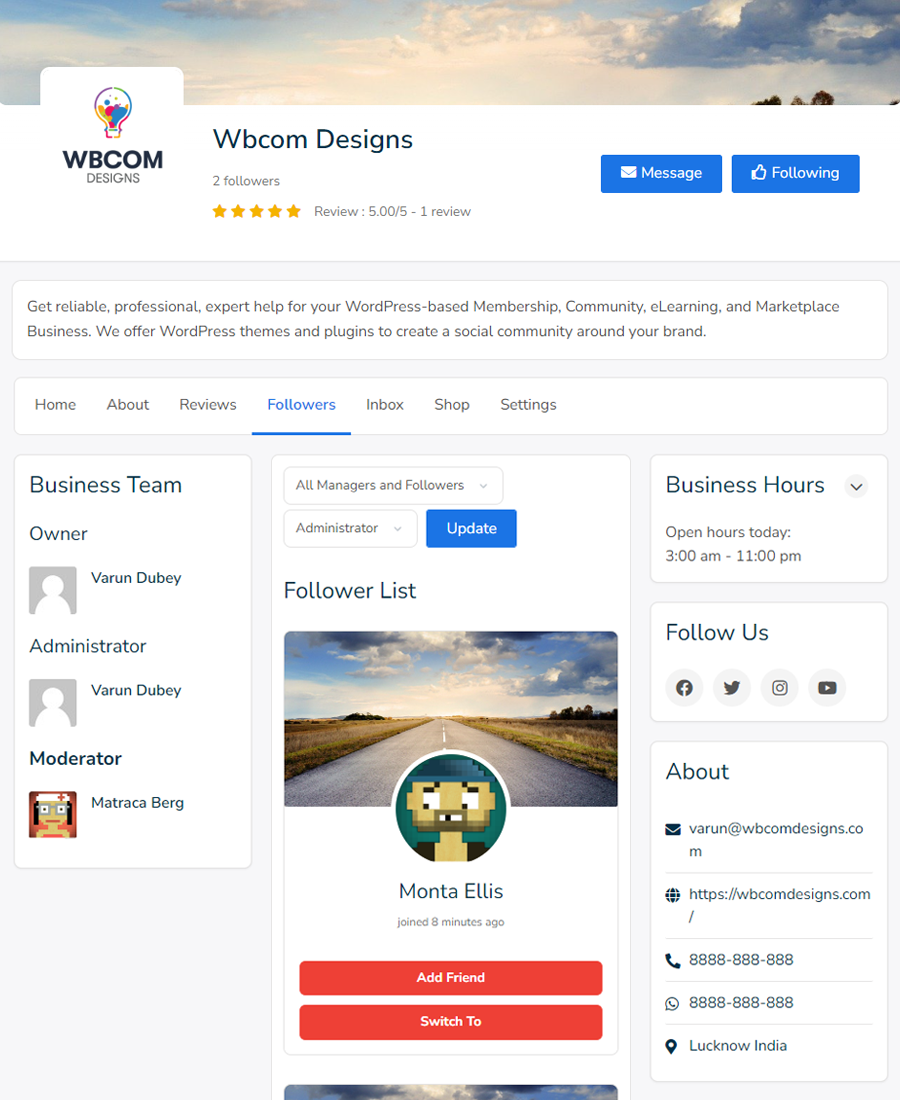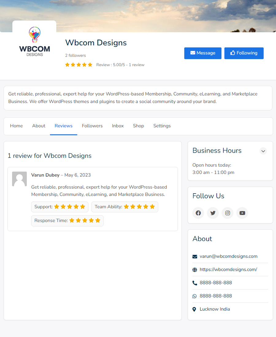 BuddyPress Business Pages enable your members to connect with their customers, fans, and followers within your social community. You can engage with your page followers by sharing relevant content, creating events, showcasing your products, and posting jobs to build and grow your community.