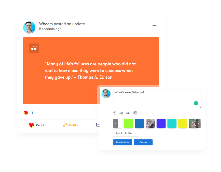 Posting an activity update using BuddyPress Quotes with beautiful backgrounds can help make that activity go viral.