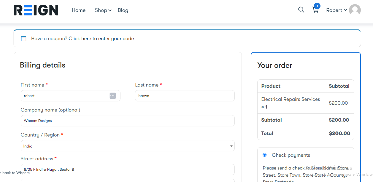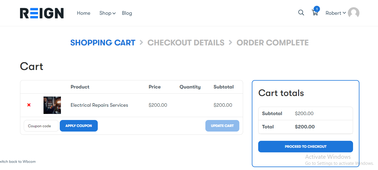 1.Robert adds the Electrical Repairs Services to his cart and proceeds to checkout.