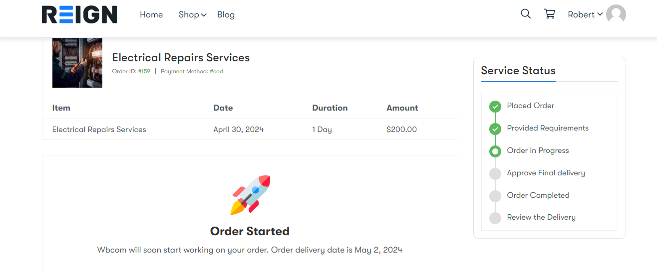 By following these steps, Robert can easily purchase Electrical Repairs Services on Woo Sell Services, provide requirements, track the progress of his order, and ultimately receive the service he needs to address his Electrical Repairs Services needs.
