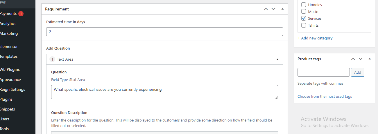 2. Vendors need to add service-related requirements or questions that he wants to be answered by the customer after the service purchase.