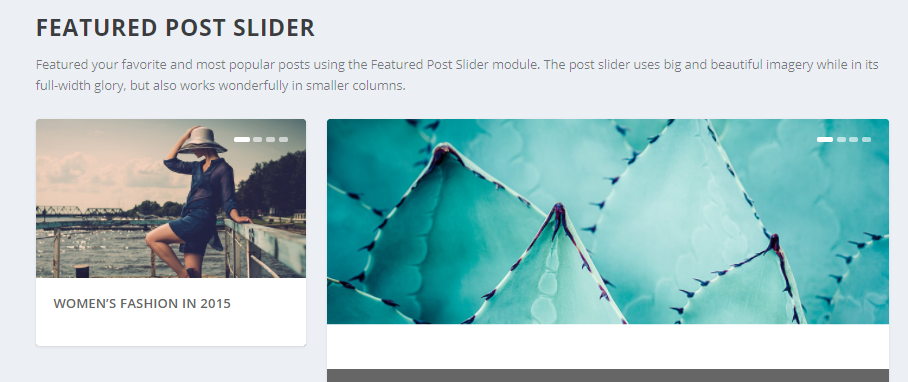 Featured Posts Slider – The featured slider module will let you create category based sliders based on posts.