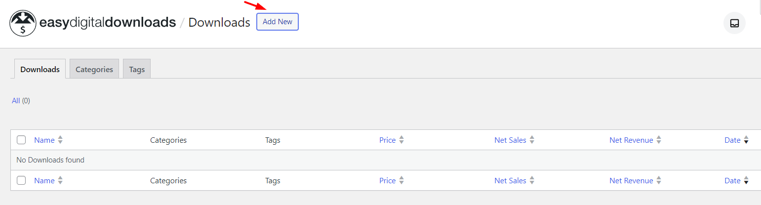 Once the plugin is activated, you will see a new menu item called Downloads in your WordPress dashboard. This is where you can manage all aspects of selling photos online with WordPress.