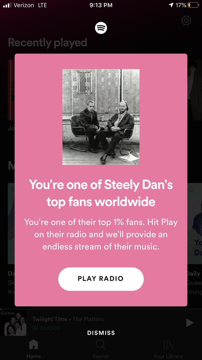 This is exactly what Spotify does. On both its desktop site and app versions, it rewards customers based on user activities. You get a personalized message for being a specific artist’s top listener in recognition of your feat: