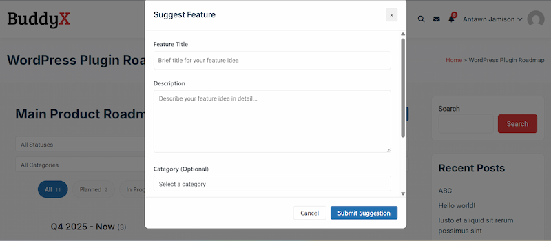 Collect feature ideas directly from your audience inside WordPress. Their feedback becomes a valuable source of inspiration and guidance. It also strengthens the feeling that users are part of the product’s evolution.