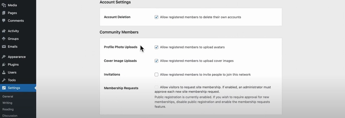 Before diving into design, it’s important to fine-tune the BuddyPress settings. These adjustments ensure your community is both functional and engaging — key steps if your goal is to build a social network and community on WordPress that members love to use.