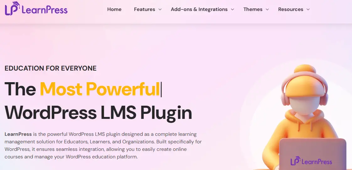 LearnPress is perfect for beginners, educators, and budget-conscious creators seeking a free but expandable LMS platform. Its large add-on library gives users the freedom to customise their online learning environment as needed.