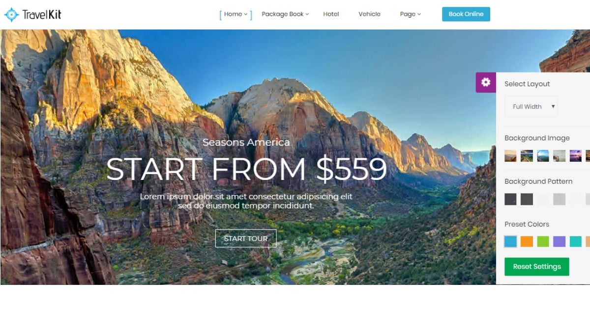 This travel and tourism theme contains pre-built layouts which are excellent templates to offer exotic discounts and packages for specific destinations to the customers. The various customization options allow detailed layouts and many features like picture galleries, tour packages, etc. In terms of detailing and variety of the website, you may find the following features included in this travel and tourism website.