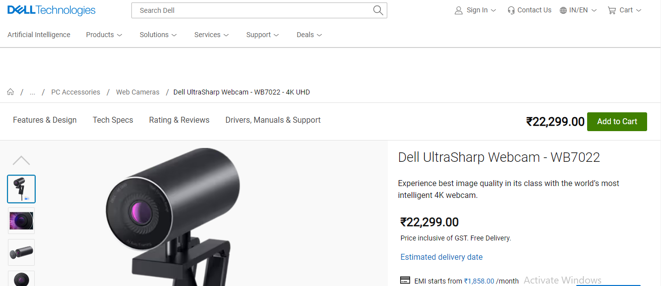 The Dell UltraSharp Webcam is a top-tier choice for professionals who need superior video quality. It offers 4K resolution, AI auto-framing, and excellent low-light performance. The UltraSharp Webcam also features HDR support and 3D/2D video noise reduction, ensuring that your video looks sharp and professional even in challenging lighting conditions.