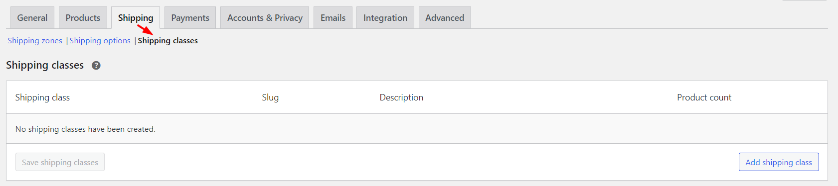 - Create the shipping classes that you need for your products