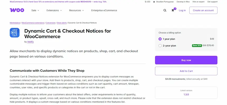 Cart Notices by SkyVerge enhances WooCommerce by displaying dynamic messages during checkout. Increase conversions, promote offers, and improve the shopping experience effortlessly. It’s a powerful tool to maximize revenue and customer satisfaction.