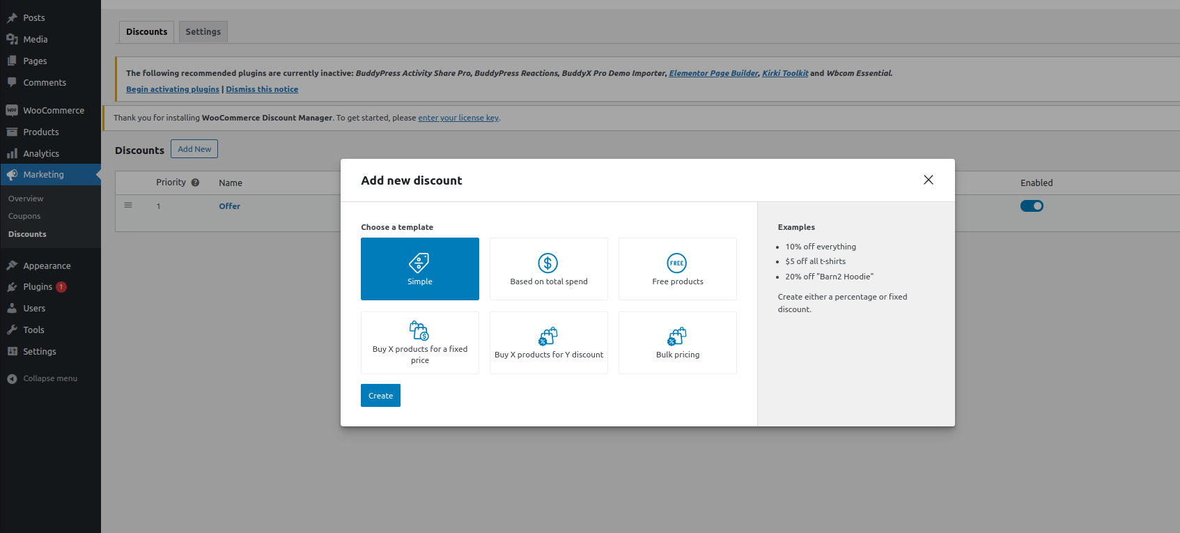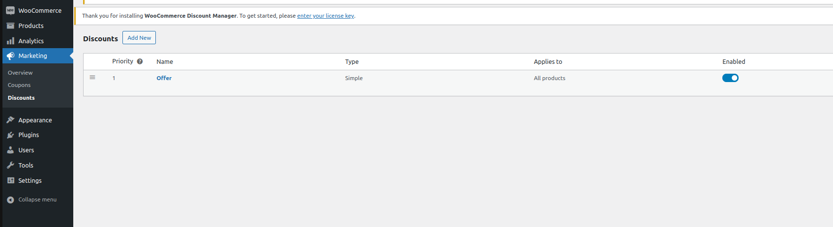 Accessing the Discount Manager: To begin setting up discounts, navigate to the Discount Manager section within the WooCommerce dashboard. Here, you’ll find a comprehensive overview of your existing discounts and options to create new ones.