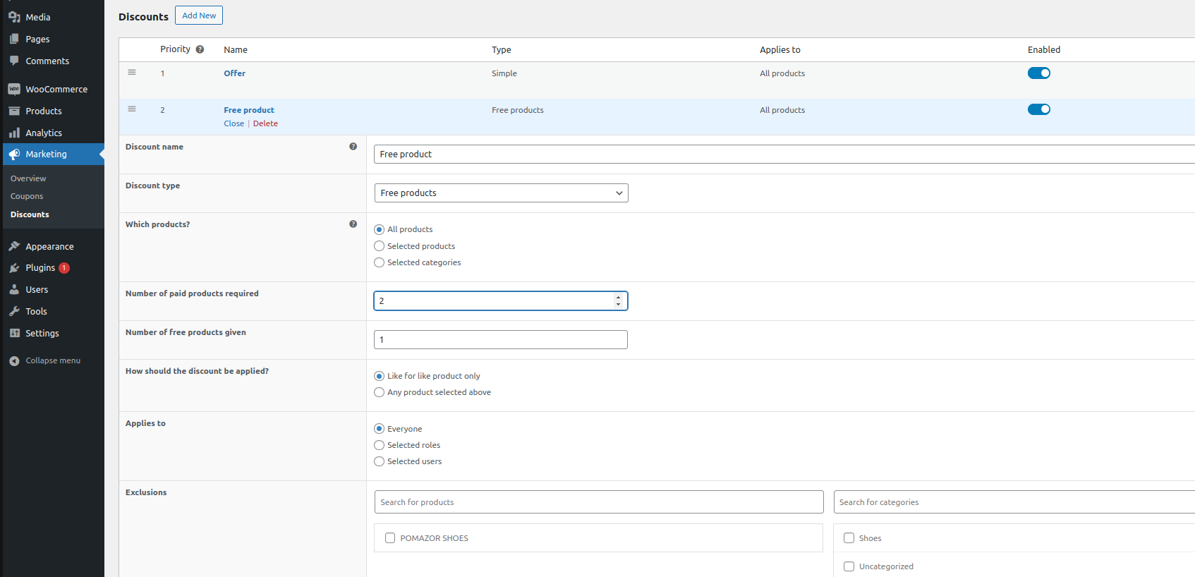 - Buy One Get One (BOGO): The plugin supports the implementation of BOGO offers, allowing merchants to incentivize additional purchases by offering free or discounted items when customers purchase a qualifying product.