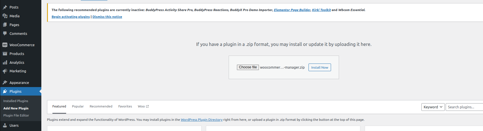 - Search for “WooCommerce Discount Manager” and click “Install Now.”