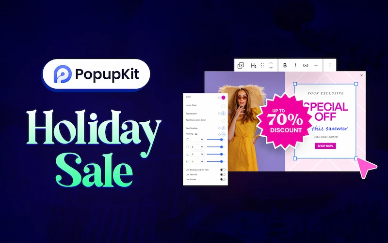 This holiday season, enjoy up to 70% off on all PopupKit premium plans. Create stunning, high-converting pop-ups with the drag-and-drop builder or launch campaigns instantly with 180+ ready templates. Use gamified offers, countdown timers, video popups, and precise trigger controls to boost engagement at the perfect moment.